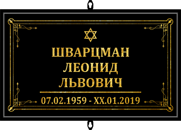 Табличка на крест малая, без фото, иудейская, в глянцевом багете из алюминия.