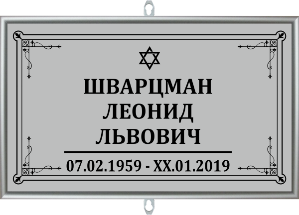 Табличка на крест малая, без фото, иудейская, в глянцевом багете из алюминия.
