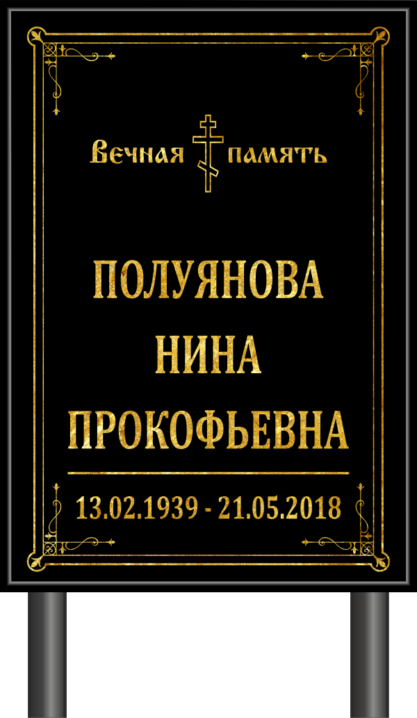 Табличка «Памятник» 40*60 см, на металлической крашеной раме, на композитной (металлической) основе, без фото, православная, черная.