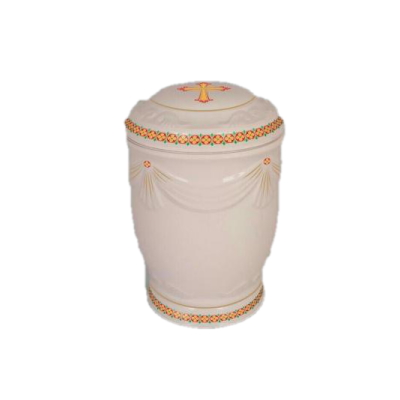 Урна для праха фарфоровая (круглая, белая с крестом)